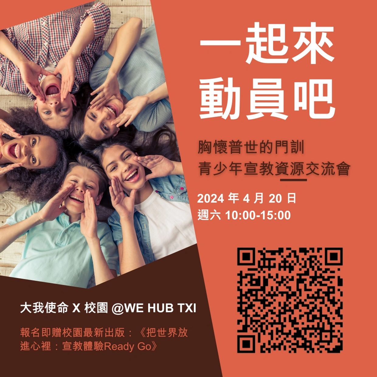 青少年階段的宣教門訓,正是健康整全宣教動員不可或缺的一環。大我使命動員協會與校園宣道中心合作,將現有的動員資源推薦給在第一線參與青少年事工的您,並且期待美好的交流。希望能夠激發更多人投入到青少年宣道教育的事工中,為神的國度建立健康、全備的門徒。
